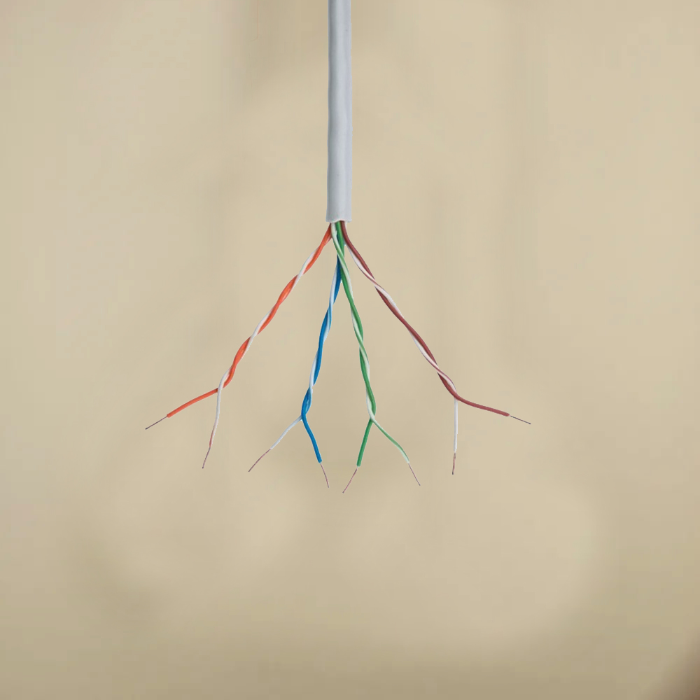 🔹 1. Тип кабелю: FTP (Foiled Twisted Pair) – кожна пара провідників скручена та має спільний екран з алюмінієвої фольги, що зменшує електромагнітні перешкоди.